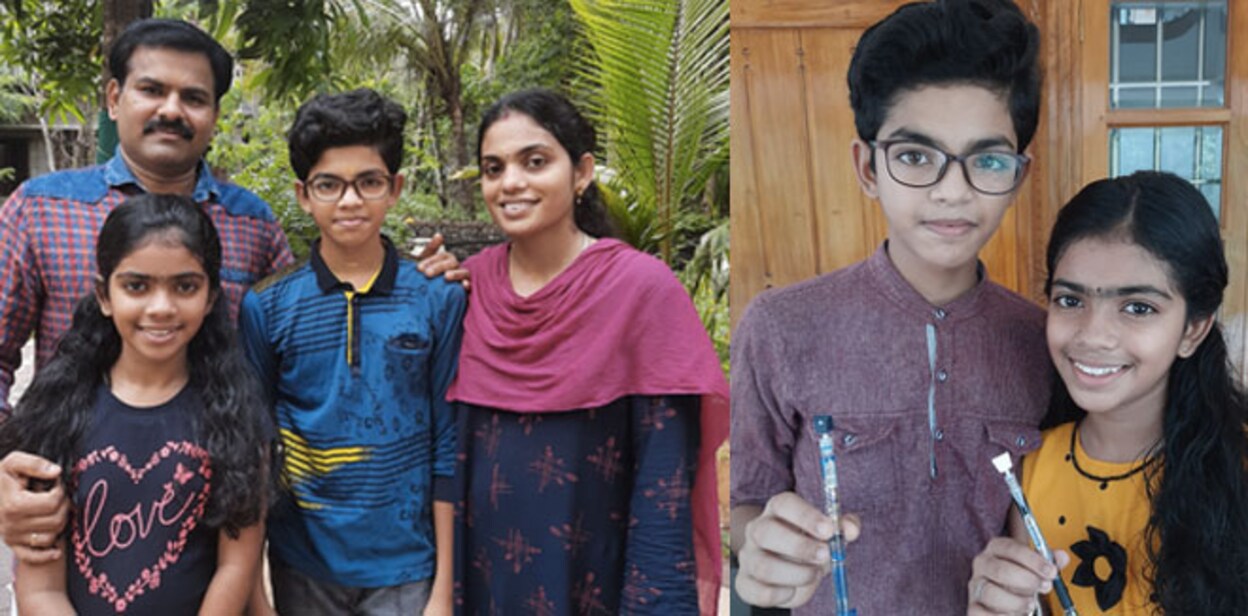 സ്കൂളിലും ഓഫിസിലും ഇനി സാനിറ്റൈസര് ചുമക്കേണ്ട; ‘പെന് സാനിറ്റൈസറു’മായി കുഞ്ഞുസഹോദരങ്ങള്