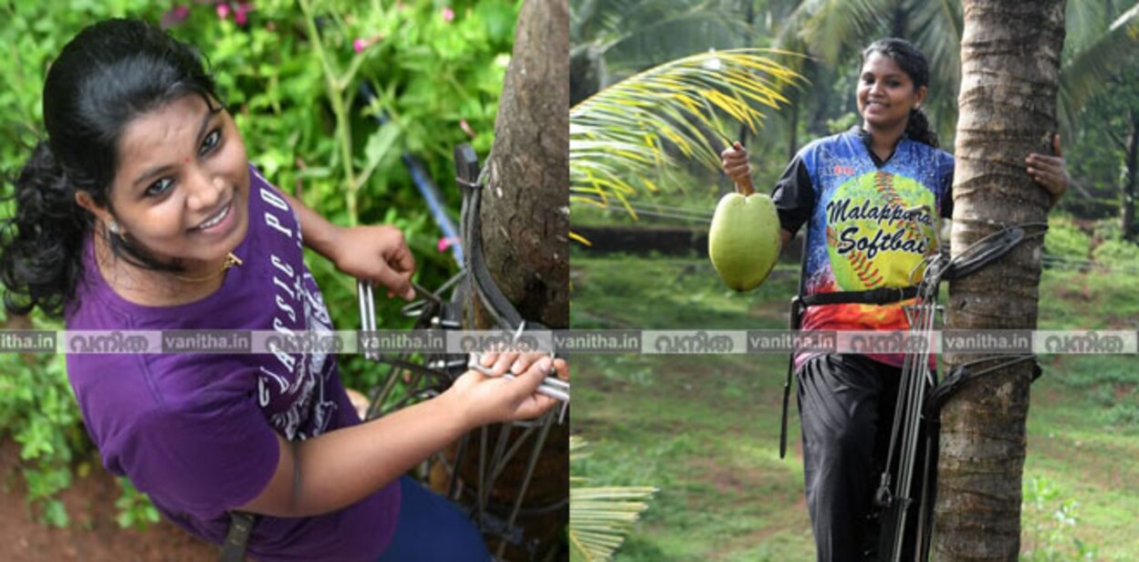 എങ്ങനെ കിട്ടി കുട്ടീ ധൈര്യം എന്ന് ചോദിക്കരുത്. അത് ജീവിക്കാന് ബുദ്ധിമുട്ടുന്നവള് സ്വാഭാവികമായി ആര്ജ്ജിച്ചെടുക്കുന്ന ധൈര്യമാണ്. തുടര്ച്ചയായ ശ്രമങ്ങള് ഒടുവില് ഫലം കണ്ടു. തെങ്ങിന് മുകളിലേക്ക് ഒടുവില് സേഫായി എത്തി. പക്ഷേ അപ്പോഴും ഉണ്ടായിരുന്നു പ്രശ്നം, വിളഞ്ഞ തേങ്ങയേത്, കരിക്കേത് എന്ന് കണ്ഫ്യൂഷന്. അവിടെ എന്നെ ഹെല്പ് ചെയ്തത് പരിചയ സമ്പന്നനായ അച്ഛനാണ്. തുടര് ശ്രമങ്ങളും പരിശീലനവും എന്നെ നാളികേരത്തിന്റെ കൂട്ടുകാരിയാക്കി. വിജയകരമായ ട്രെയിനിങ്ങിനൊടുവില് എനിക്കു കിട്ടി ആദ്യശമ്പളം...40 രൂപ. അത് ജീവിതത്തിലൊരിക്കലും മറക്കില്ല.