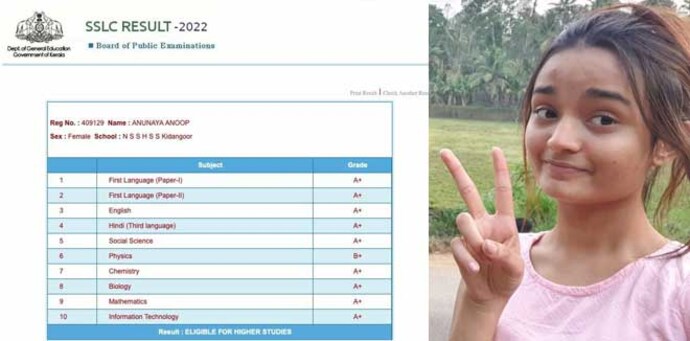 എസ്എസ്എൽസി പരീക്ഷയിൽ മികച്ച വിജയം നേടി മലയാളത്തിന്റെ പ്രിയബാലതാരം മീനാക്ഷി അനൂപ്. പത്തിൽ ഒൻപത് വിഷയങ്ങൾക്കും മീനാക്ഷിക്ക് എ പ്ലസ് ഗ്രേഡ് ആണ്. ഫിസിക്സിന് ബി പ്ലസ് ഗ്രേഡ്. ‘ഒന്ന് ബി പോസിറ്റീവായിരിക്കാൻ, ബാക്കി എല്ലാം എ പോസിറ്റീവ്’ എന്നാണ് തന്റെ മാർക് ലിസ്റ്റിന്റെ ചിത്രം പങ്കുവച്ച് മീനാക്ഷി കുറിച്ചത്.