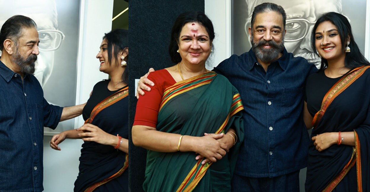 ഇന്ത്യൻ സിനിമയുടെ അഭിനയചക്രവർത്തി കമൽ ഹാസനെ നേരിൽ കണ്ടതിന്റെയും വിശേഷങ്ങൾ പങ്കുവച്ചതിന്റെയും സന്തോഷം കുറിച്ച് നടി ഉർവശിയുടെയും നടൻ മനോജ് കെ ജയന്റെയും മകളായ കുഞ്ഞാറ്റ എന്ന തേജ ലക്ഷ്മി. ഉർവശിക്കും തനിക്കുമൊപ്പമുള്ള കമലിന്റെ ചിത്രങ്ങളും താരപുത്രി പോസ്റ്റ് ചെയ്തിട്ടുണ്ട്.