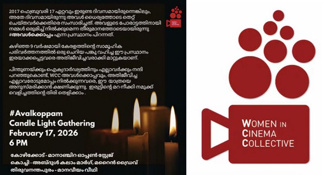 ‘2017 ഫെബ്രുവരി 17 ഏറ്റവും ഇരുണ്ട ദിവസമായിരുനെങ്കിലും, അതേ ദിവസമായിരുന്നു അവൾ സധൈര്യം അനീതിക്കെതിരെ പ്രതികരിച്ചത്. അവളുടെ പോരാട്ടത്തിനായി നമ്മൾ ഒരുമിച്ച് നിൽക്കുമെന്ന തീരുമാനത്തോടെയായിരുന്നു #അവൾക്കൊപ്പം എന്ന പ്രസ്ഥാനം പിറന്നത്. കഴിഞ്ഞ 9 വർഷമായി കേരളത്തിന്റെ സാമൂഹിക പരിവർത്തനത്തിൽ ഒരു ചെറിയ പങ്കു വഹിച്ച ഈ പ്രസ്ഥാനം ഇരയാക്കപ്പെട്ടവരെ അതിജീവിതകളാക്കാൻ നിരന്തരം പ്രവർത്തിച്ചു. പിന്തുണയ്ക്കും ഐക്യദാർഢ്യത്തിനും എല്ലാവർക്കും നന്ദി പറഞ്ഞുകൊണ്ട്, ഡബ്ല്യൂസിസി അവൾക്കൊപ്പവും, അതിജീവിച്ച എല്ലാവർക്കും ഒപ്പം നിൽക്കുന്നവരെ ഈ യാത്രയുടെ ഭാഗമാവാൻ ക്ഷണിക്കുന്നു. ഇരുട്ടിന്റെ മറ നീക്കി നമുക്ക് വെളിച്ചത്തിന്റെ തിരി തെളിക്കാം’. – എന്നാണ് വിമൺ ഇൻ സിനിമ കലക്ടീവ് സോഷ്യൽ മീഡിയയിൽ കുറിച്ചത്.