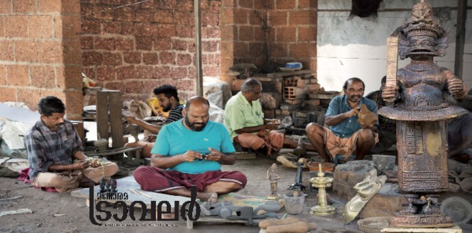 വിഗ്രഹ എന്നു പേരിട്ടിരിക്കുന്ന ബെൽമെറ്റൽ ക്ലസ്റ്റർ യൂണിറ്റിലേക്കു ചെല്ലുമ്പോൾ അവിടെ എല്ലാവരും പണിത്തിരക്കിലാണ്. ദേവിയുടെ ചെറു രൂപത്തിനായി മെഴുകിൽ ഡിസൈൻ ചെയ്യുന്നതിനിടെ വൽസൻ കുഞ്ഞിമംഗലം പുഞ്ചിരിയോടെ സ്വാഗതം ചെയ്തു. ‘കുഞ്ഞിമംഗലത്തെ വെങ്കലഗ്രാമത്തിന് ആയിരം വർഷത്തെ എങ്കിലും പഴക്കം കാണും. എങ്ങും രേഖപ്പെടുത്തിയിട്ടില്ലെങ്കിലും ഇവിടത്തെ സൃഷ്ടികൾ, അത് ഓട്ടു വിളക്കായാലും പഞ്ചലോഹ വിഗ്രഹമായാലും വെള്ളീയത്തിലുള്ള പാത്രങ്ങളായാലും ഞങ്ങൾക്ക് തിരിച്ചറിയാനാകും. അതാണ് കുഞ്ഞിമംഗലം ശൈലി.’ വൽസേട്ടൻ അവരുടെ ചരിത്രത്തിൽ നിന്നാണ് ഗ്രാമത്തിന്റെ പരിചയപ്പെടുത്തൽ തുടങ്ങിയത്. ‘ആദ്യത്തെ പാലോട്ട് കാവെന്ന് അറിയപ്പെടുന്ന അഴീക്കോട് പാലോട്ട് കാവിൽ ഉത്സവകാലത്ത് മാത്രം എഴുന്നള്ളിക്കുന്ന ഒരു വിളക്കുണ്ട്. ഏകദേശം ആയിരം വർഷം പഴക്കമുള്ള അതു കണ്ടാല് അറിയാം കുഞ്ഞിമംഗലം ശൈലിയോട് ബന്ധപ്പെട്ട ആരോ ആണ് അതിന്റെ നിർമാതാവെന്ന്.’