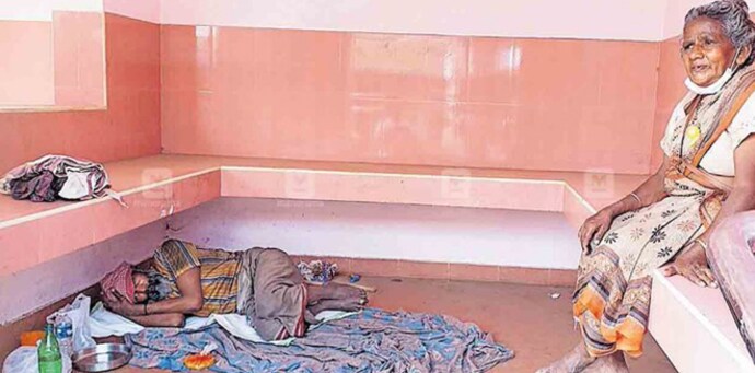 വടക്കഞ്ചേരി ടൗണിലെ കിഴക്കഞ്ചേരി റോഡില് പുതിയതായി നിര്മിച്ച ബസ് കാത്തിരിപ്പു കേന്ദ്രത്തിലാണ് ഒരു മാസത്തിലേറെയായി അമ്മാളു അമ്മ രോഗിയായ മകൻ സുരേഷിനൊപ്പം താമസം. മാനസിക വെല്ലുവിളി നേരിടുന്ന 45 വയസ്സുകാരനായ സുരേഷിനു മരുന്നു വാങ്ങാൻ പോലും കഴിയുന്നില്ല അമ്മാളുഅമ്മയ്ക്ക്.
